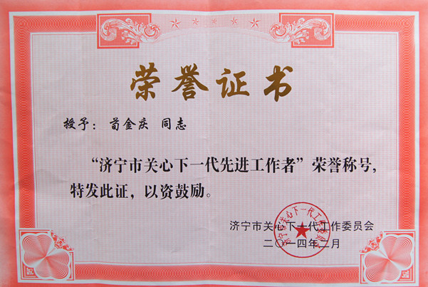 日前,濟(jì)寧市關(guān)工委表彰了全市47家“‘五好’關(guān)工委”及79名“關(guān)心下一代先進(jìn)工作者”,華威保安集團(tuán)榜上有名,華威保安集團(tuán)公司董事長、總裁荀金慶被授予“濟(jì)寧市關(guān)心下一代先進(jìn)工作者”榮譽(yù)稱號。