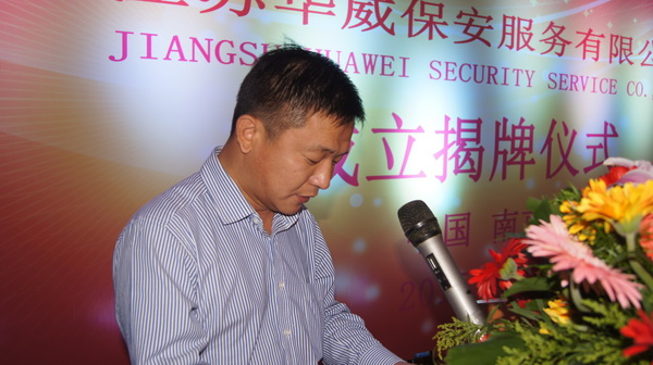 山東華威保安集團(tuán)董事長(zhǎng)、總裁荀金慶致辭,向多年來關(guān)心支持集團(tuán)公司發(fā)展的各級(jí)領(lǐng)導(dǎo)和社會(huì)各屆人士表示衷心感謝。簡(jiǎn)要介紹了公司的發(fā)展歷程,并對(duì)下步工作提出了希望和要求。他表示:“集團(tuán)公司在南京成立江蘇華威公司,是為了更好的開發(fā)江蘇地區(qū)安保業(yè)務(wù),滿足長(zhǎng)三角地區(qū)新市場(chǎng)的需求,是深入貫徹集團(tuán)“高端發(fā)展、轉(zhuǎn)型升級(jí)”及“走出去”戰(zhàn)略的又一有力舉措,江蘇公司的成立代表著華威進(jìn)軍華東市場(chǎng)道路上又邁出了一大步。成立后的江蘇公司將借助長(zhǎng)三角經(jīng)濟(jì)帶這一新環(huán)境,采取更加符合開展地域特點(diǎn)的人事、用工、分配、管理新機(jī)制,形成更加有利于公司業(yè)務(wù)開拓的內(nèi)部環(huán)境和運(yùn)營(yíng)機(jī)制,依法經(jīng)營(yíng)、誠(chéng)信經(jīng)營(yíng),為客戶提供更加專業(yè)、高效的安保服務(wù),打響來至齊魯大地、東方圣城的華威保安品牌。”