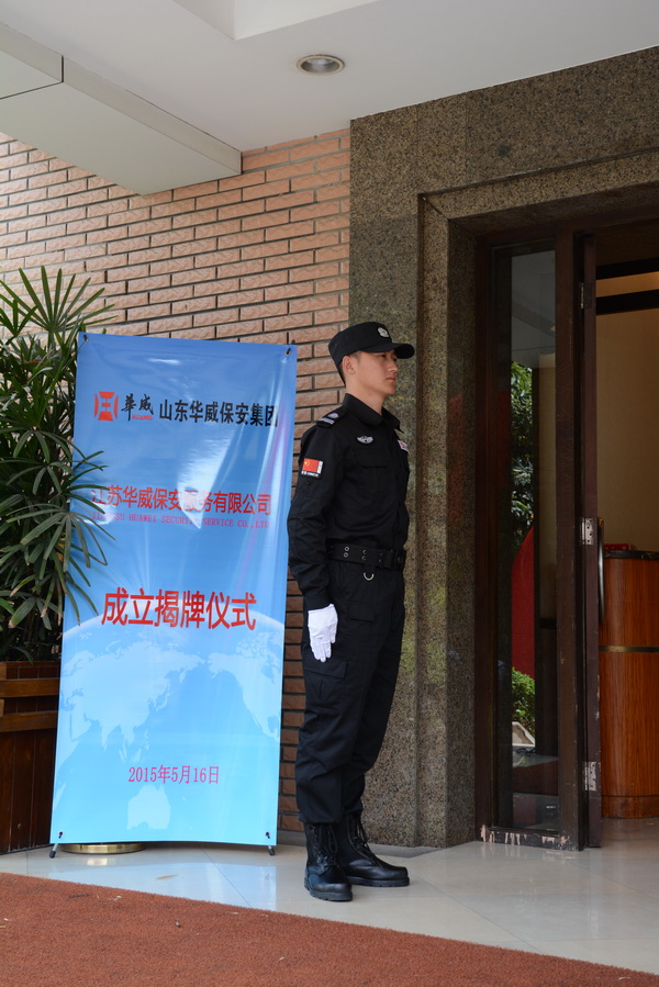 5月16日,山東華威保安集團(tuán)江蘇華威保安服務(wù)有限公司在南京鼓樓區(qū)雙門樓賓館舉行開業(yè)儀式。江蘇省山東商會(huì)總會(huì)長(zhǎng)魯宏振先生、南京市公安局保安監(jiān)管大隊(duì)大隊(duì)長(zhǎng)紀(jì)鐵軍先生、南京市公安局保安監(jiān)管大隊(duì)教導(dǎo)員、南京市保安協(xié)會(huì)副秘書長(zhǎng)徐雪峰先生,山東華威保安集團(tuán)公司董事長(zhǎng)、總裁荀金慶等領(lǐng)導(dǎo)出席揭牌儀式并為“江蘇華威保安服務(wù)有限公司”揭牌。
