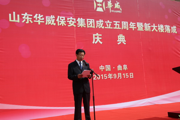 秋風(fēng)送爽、丹桂飄香,金秋九月山東華威保安集團(tuán)迎來(lái)了五周歲生日。9月15日上午,集團(tuán)公司在剛剛落成的新大樓前隆重舉行了集團(tuán)成立五周年暨新大樓落成慶典。曲阜市副市長(zhǎng)林長(zhǎng)運(yùn)、曲阜市公安局副局長(zhǎng)司令國(guó)與來(lái)自全國(guó)各地的100多家服務(wù)客戶、保安同行以及曲阜相關(guān)單位的領(lǐng)導(dǎo)出席了慶典大會(huì),邀請(qǐng)嘉賓及華威員工代表500多人在現(xiàn)場(chǎng)就座,華威戰(zhàn)略合作伙伴——俄羅斯俄技集團(tuán)安全技術(shù)公司CEO弗拉迪米爾先生一行也專程趕來(lái)參加慶典。常務(wù)副總裁楊中河主持慶典儀式。