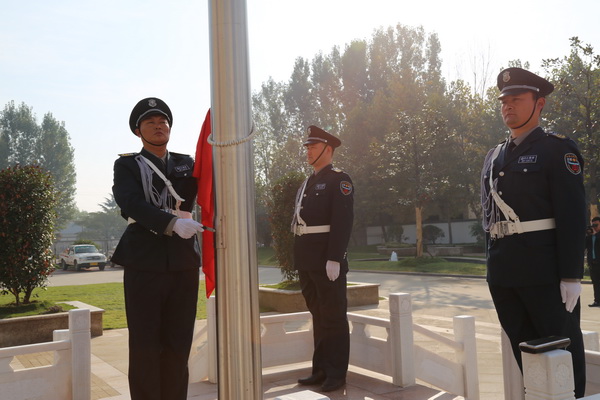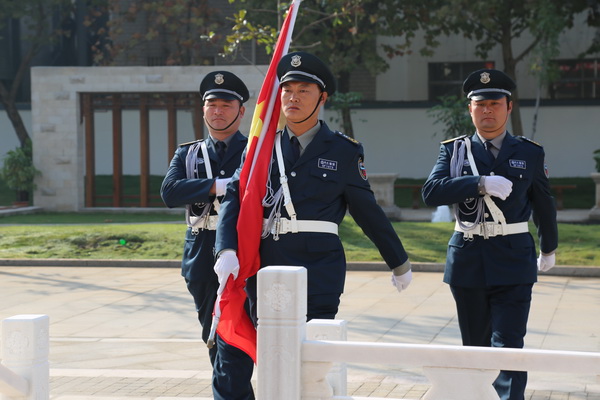 上午8點58分,集團總部全體員工、保安員代表齊聚新辦公大樓門前,列隊參加升旗儀式。當(dāng)升旗手正步進場時,在莊嚴(yán)的國歌聲中,大家仰視五星紅旗冉冉升起,迎風(fēng)招展。隨后,焰火騰空而起,劃出了一道道優(yōu)美的弧線,象征著華威的事業(yè)蒸蒸日上,此時此刻,全體華威同仁無不激動萬分、歡欣鼓舞。