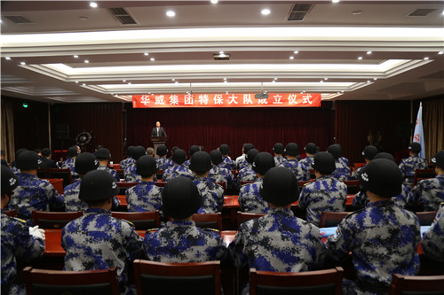 成立儀式上,集團黨總支副書記李曉虎宣讀了《關于組建特保大隊的決定》及干部任命。集團副總裁兼特保大隊大隊長顏承國在講話中表示,公司特保大隊的組建,是樹立華威形象的又一新舉措,有信心帶出一支紀律嚴明,業(yè)務素質(zhì)高,身體素質(zhì)好的鋼鐵隊伍。