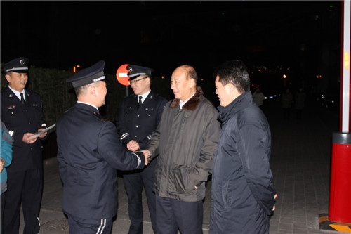 夜間,董事長在分公司領導的陪同下,對北京人濟置業(yè)發(fā)展有限公司、中石化總部等項目進行了夜查,走訪慰問堅守在一線執(zhí)勤的保安員工,送去了集團領導的關愛之情。